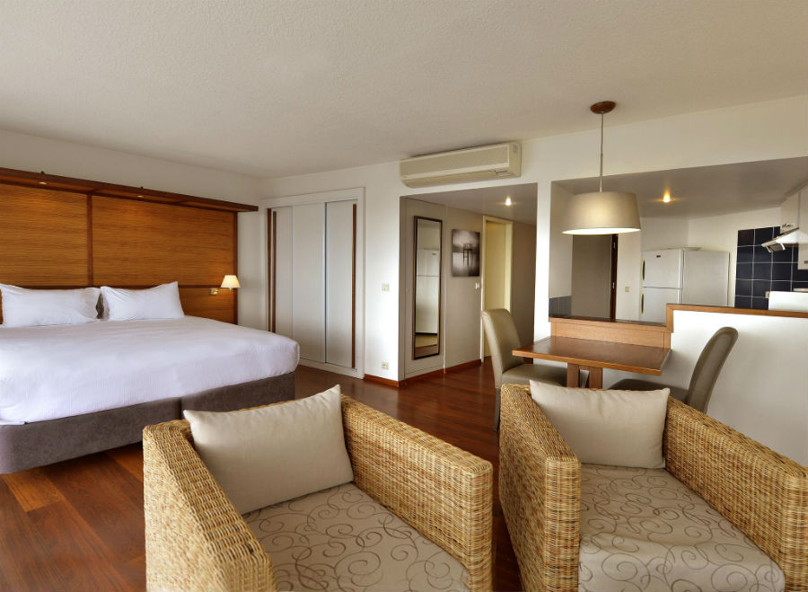 所有公寓均包括设备齐全的厨房/ 洗衣房、遥望泻湖的露台、独立浴室、电视/ 录像放映机、无线上网、希尔顿帝皇级双人或单人床及希尔顿特有设施。