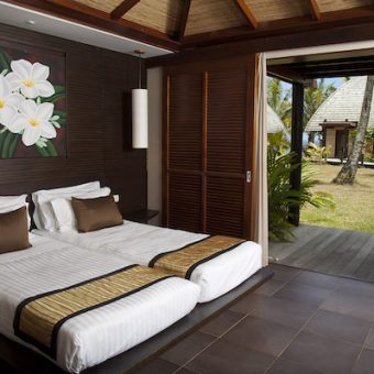 Tieti Tera has 10 spacious beach bungalows facing the lagoon, 20 tropical bungalows scattered around the gardens, 20 standard rooms on the ground floor or first floor with terrace or balcony. Every bathroom has a shower, soap & shampoo and a hair dryer. Beach bungalows also have a bathtub. All rooms and bungalows are equipped with flat screen TV, a tea and coffee making facilities and air conditioning.